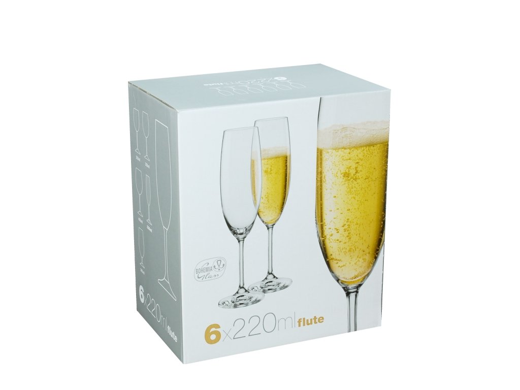 Sklenice na sekt - flétny Lara-Bohemia 220 ml - sada 6 ks