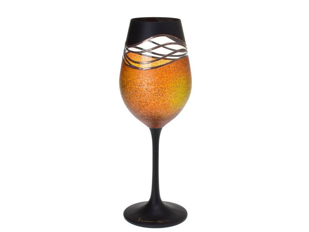 Sklenice na bílé víno dekorované ve sklářském Studiu Miracle paní Vlasty Voborníkové, která se zabývá výhradně ručním dekorováním skleněných výrobků za použití patentované techniky dekorování - aplikace kovů v kombinaci s barevnými plochami. Výrobek je autorsky signován, opatřen certifikátem originality. Jedná se o dekorativní sklo. Nelze použít v myčce na nádobí.