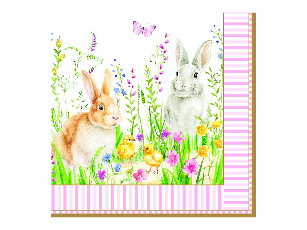 Dezertní třívrstvé ubrousky Happy easter jsou třívrstvý s motivem zajíčků a kuřátek. Balení ubrousků obsahuje 20 kusů. Rozměr je 33×33 cm.
