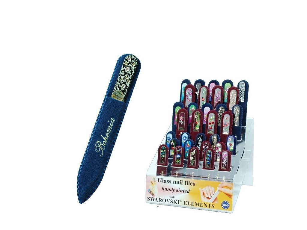 Skleněný pilníček na nehty s křišťály Swarovski Elements®, barevný podklad, Kamínky I - 110 mm