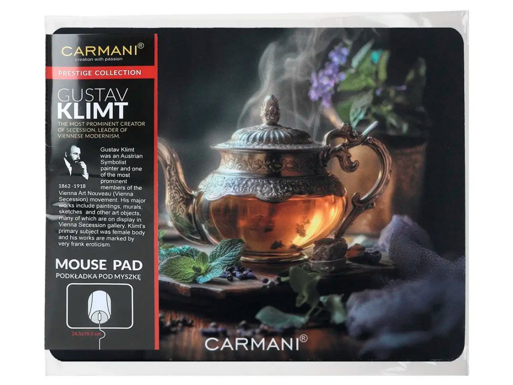 Podložka pod počítačovou myš G. Klimt, Rodina je součástí značky Carmani. Rozměr podložky je 20*24*0,3 cm.