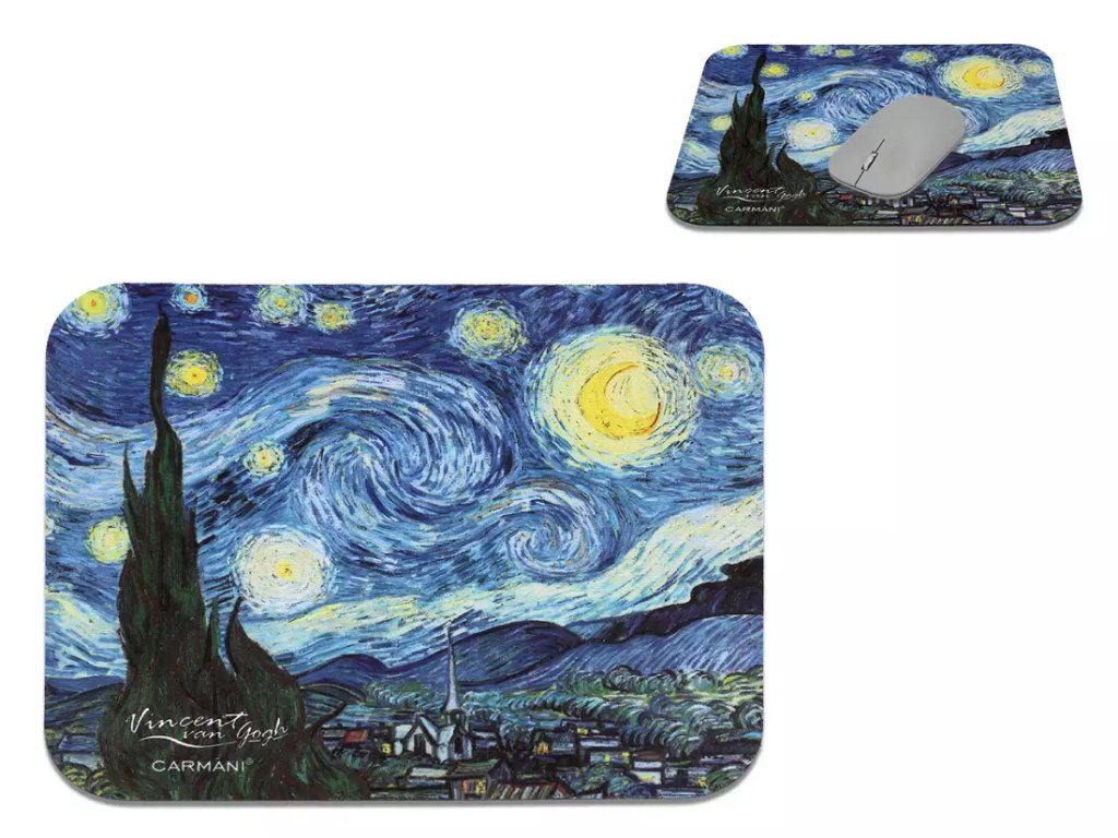 Podložka pod počítačovou myš V. van Gogh, Hvězdná noc je součástí značky Carmani. Rozměr podložky je 20*24*0,3 cm.