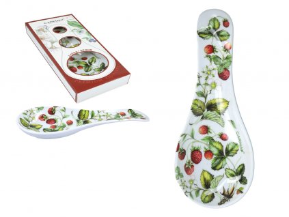 Porcelánová lžíce na odkládání Příborů a vařeček Lesní jahody pochází z produkce Carmani. Rozměr je 23,5 x 9,5 x 2,5 cm. Baleno v dárkové krabičce.