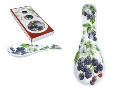 Porcelánová lžíce na odkládání Příborů a vařeček Ostružiny pochází z produkce Carmani. Rozměr je 23,5 x 9,5 x 2,5 cm. Baleno v dárkové krabičce.