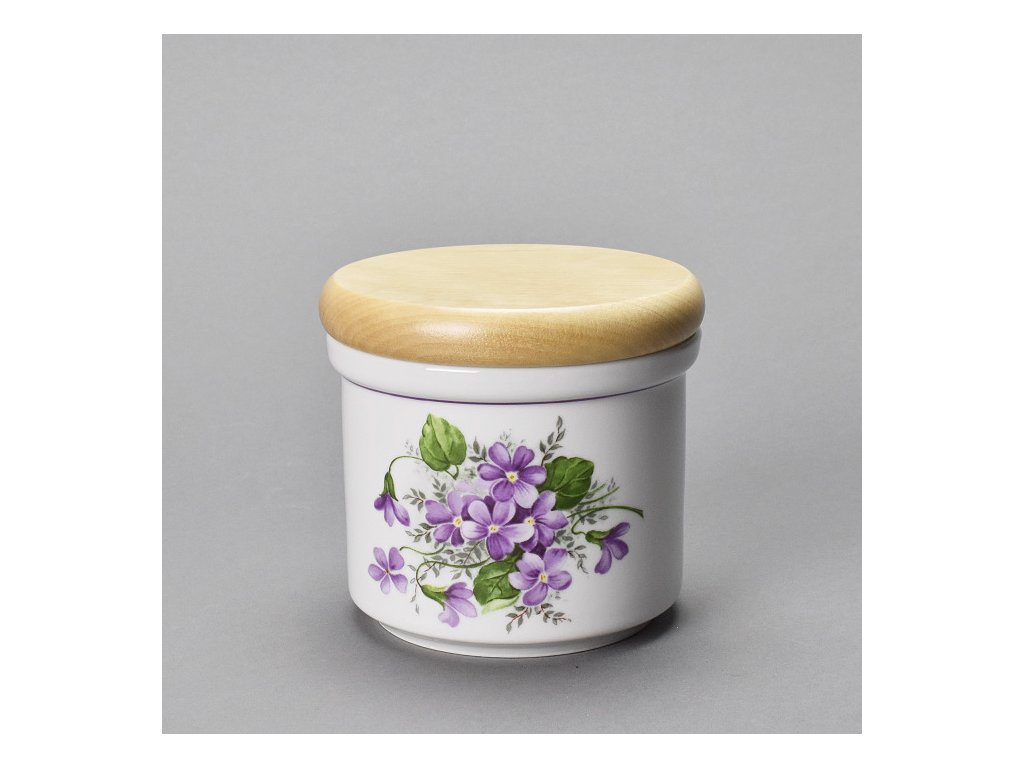 Dóza A malá se dřevěným víčkem fialky