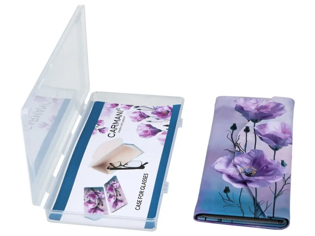 Carmani - Skládací pouzdro na brýle Fialové květy