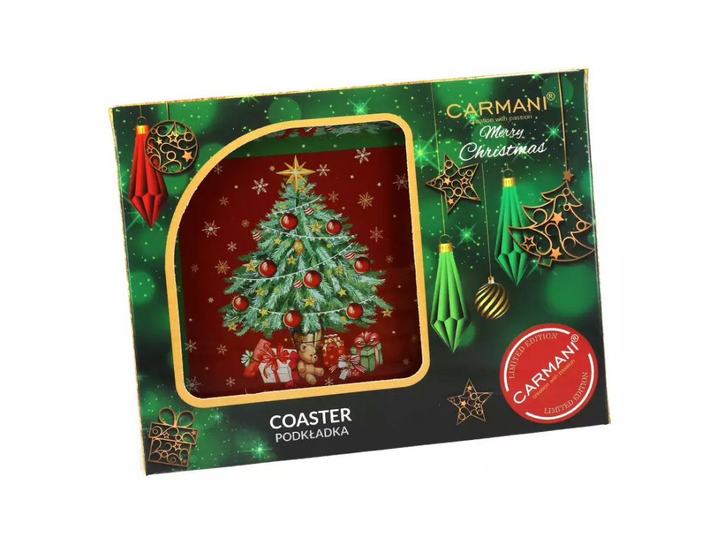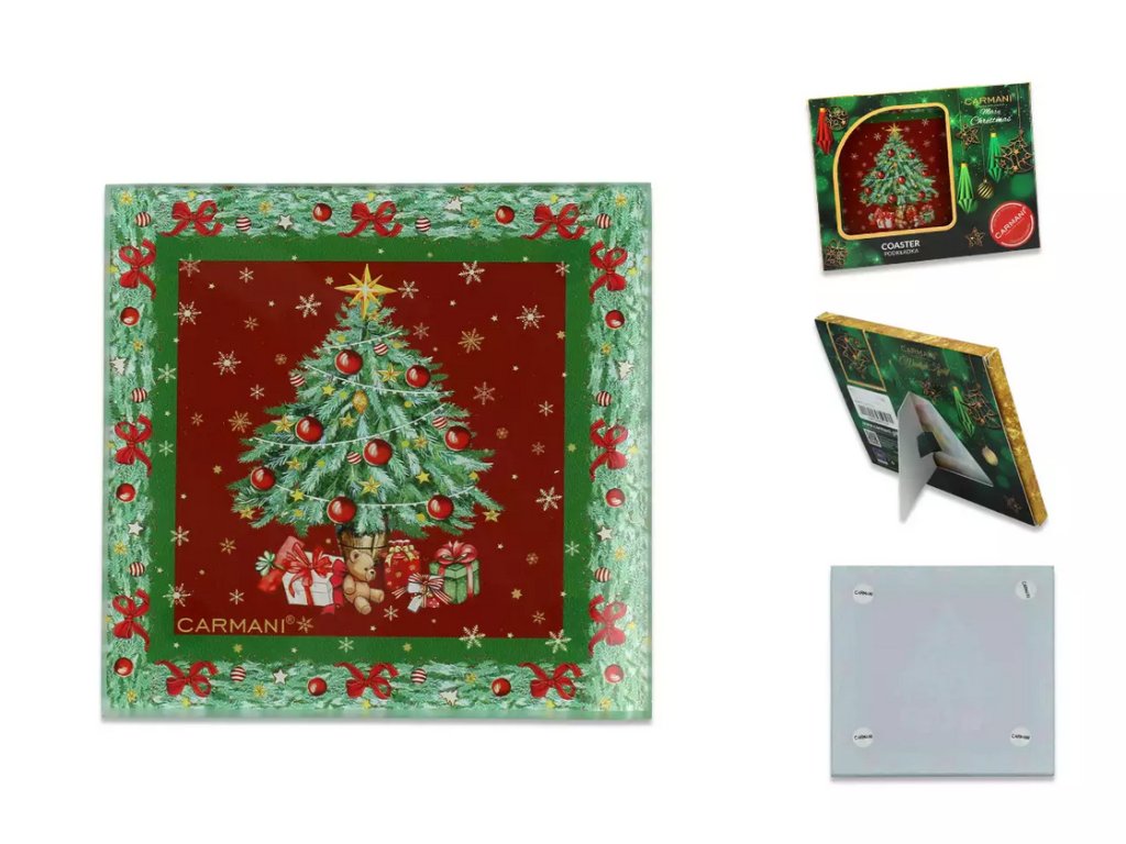 Carmani - Skleněné prostírání pod hrnek Vánoční stromeček s dárky dekor č. 3 - 10,5*10,5 cm