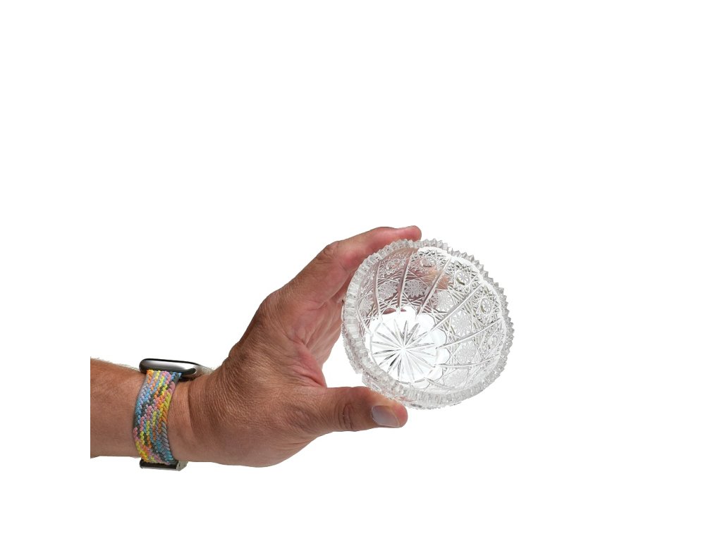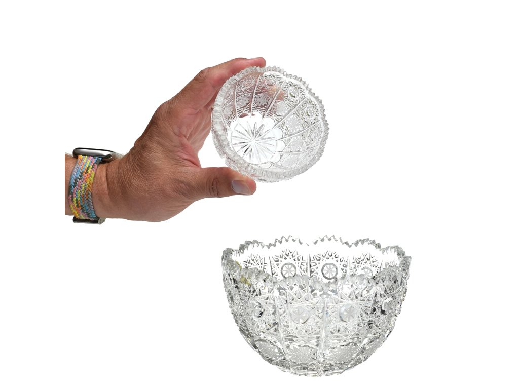 Broušená mistička - krásný kousek bohatě ručně broušeného skla z českého křišťálu. vysoká umělecká hodnota tradiční řemeslo reprezentativní český dárek O vzniku typu brusu 500 PK: V roce 1929 vznikl patrně nejslavnější a komerčně nejúspěšnější typ brusu českého broušeného skla, užívaného později zejména při zdobení olovnatého křišťálu, a to vzor 500 PK. Jeho autorem byl brusič a podnikatel Ladislav Prostředník z Dobrušky (zkratka PK v typu dekoru jsou jeho iniciály).