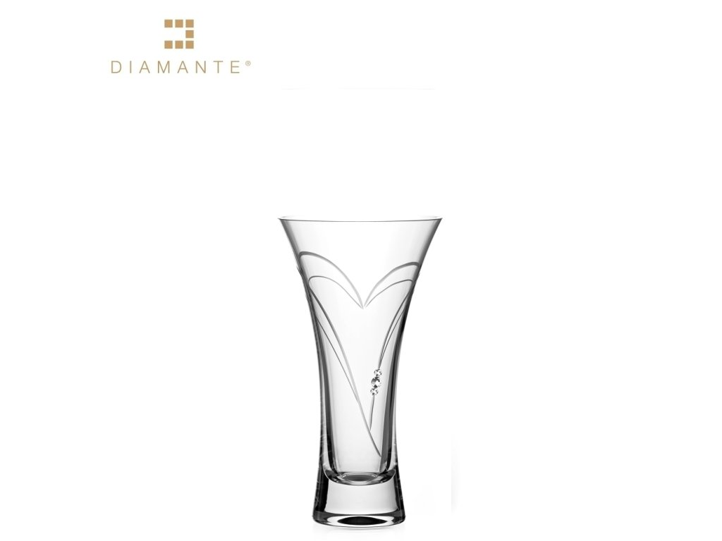 Křišťálová váza s ručně vybroušeným motivem srdce a dekorovaná třemi křišťály Swarovski®. Baleno v dárkovém kartonku s potiskem a logem. Není vhodné do myčky na nádobí.