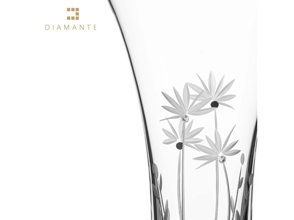 Křišťálová menší váza od DIAMANTE®, s ručně aplikovaným designem „Swirl“, který se skládá z matných výbrusů, které obklopují vázu po celém obvodu, před dokončením s pravými krystaly Swarovski®. Baleno v ozdovném kartonu. Nelze mýt v myčce na nádobí.