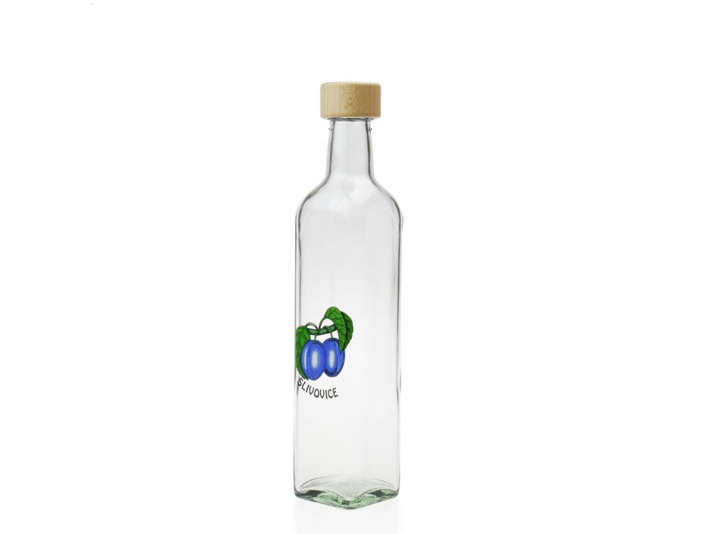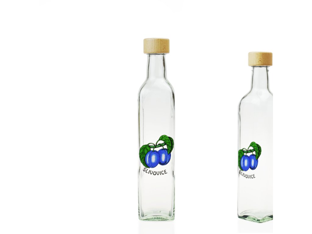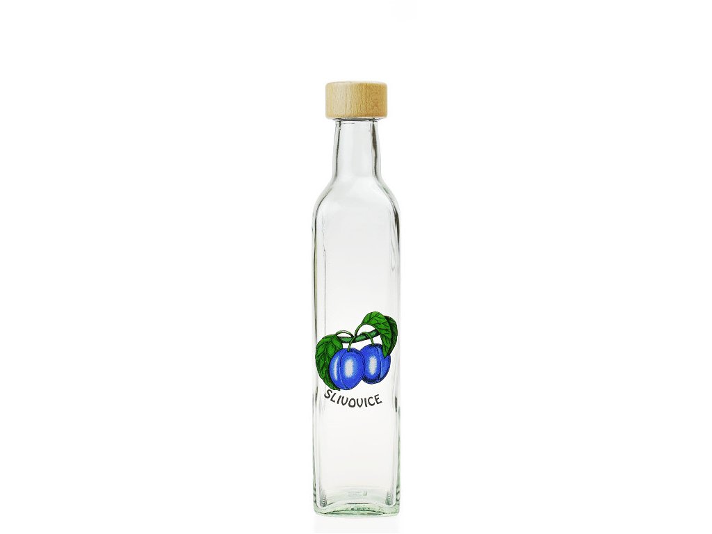 500 ml, výška 260 mm, ø 66 mm uzávěr dřevo + plast šroubovací. Cena včetně uzávěru.