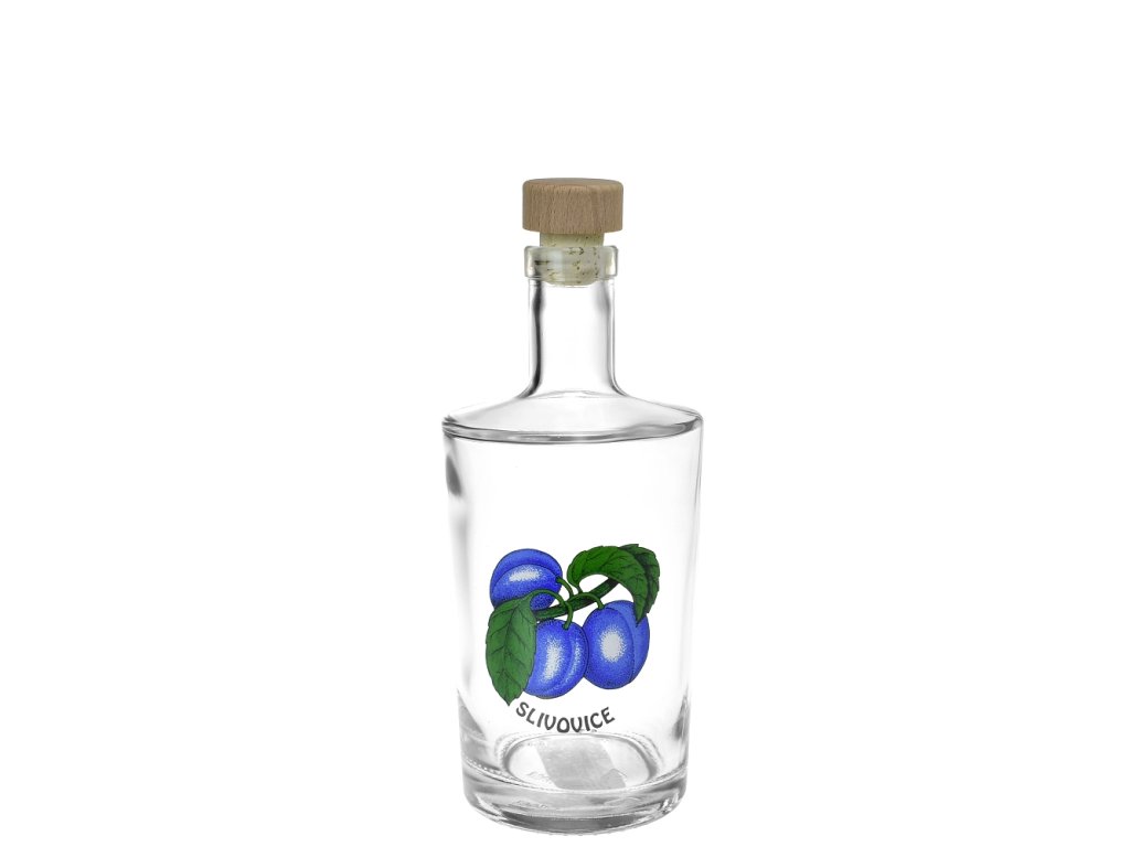 500 ml, výška 260 mm, ø 66 mm uzávěr dřevo + plast šroubovací. Cena včetně uzávěru.
