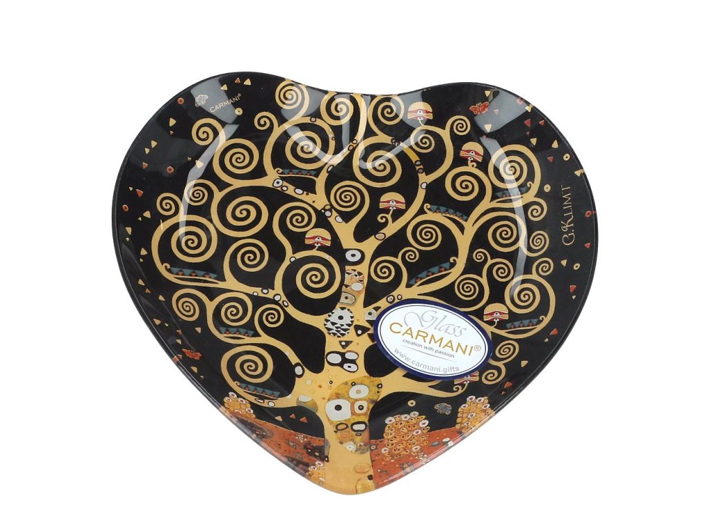 Dekorativní skleněný tác srdce Gustav Klimt "Strom života" - 19 x 18 cm