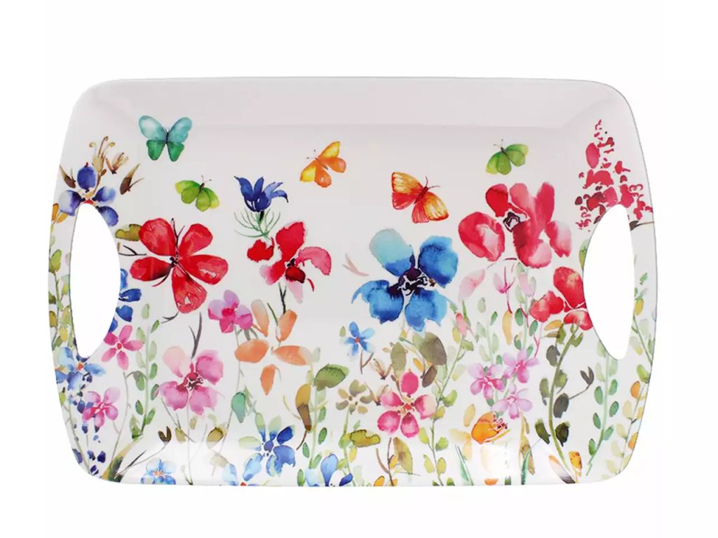 Tác Butterfly Meadow doplňuje nabídku výrobků určených pro stolování. Tento tác oceníte například při malém pikniku na dece na zahradě. Tento vhodný doplněk do vaší kuchyně, může být použit při servírování čaje či kávy, malého občerstvení nebo dokonce k snídani do postele. Tác není určen pro přímý styk s potravinami.