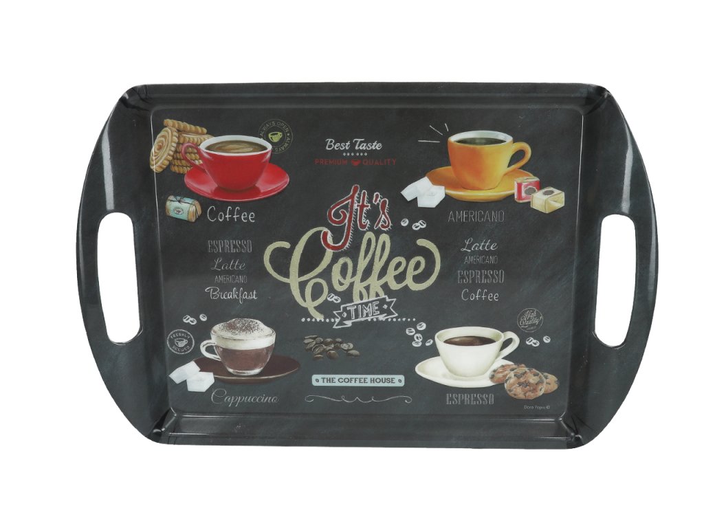 Tác Its coffe time doplňuje nabídku výrobků určených pro stolování. Tento tác oceníte oceníte například při malém pikniku na dece na zahradě. Melaminový tác Its coffe time je vhodný doplněk do vaší kuchyně, může být použit při servírování čaje či kávy,malého občerstvení nebo dokonce k snídani do postele. Tác Its coffe time můžete doplnit i jinými výrobky z téže kolekce. Tác není určen pro přímý styk s potravinami.