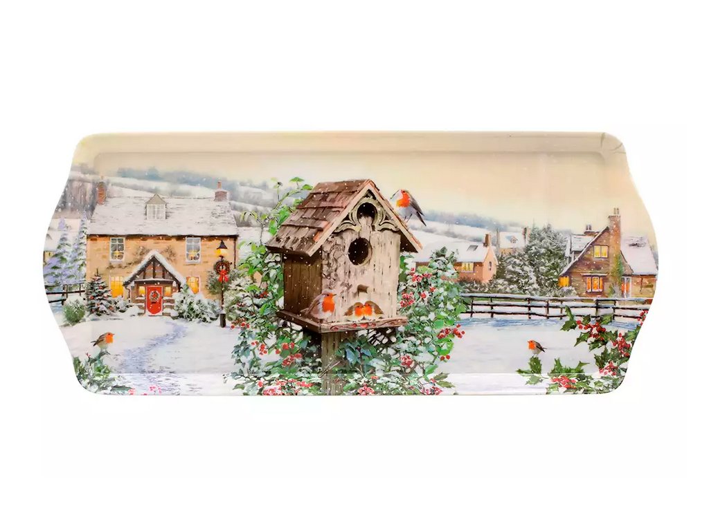 Leonardo - Plastový tác Ptáčci u budky v zimě - 39*12 cm