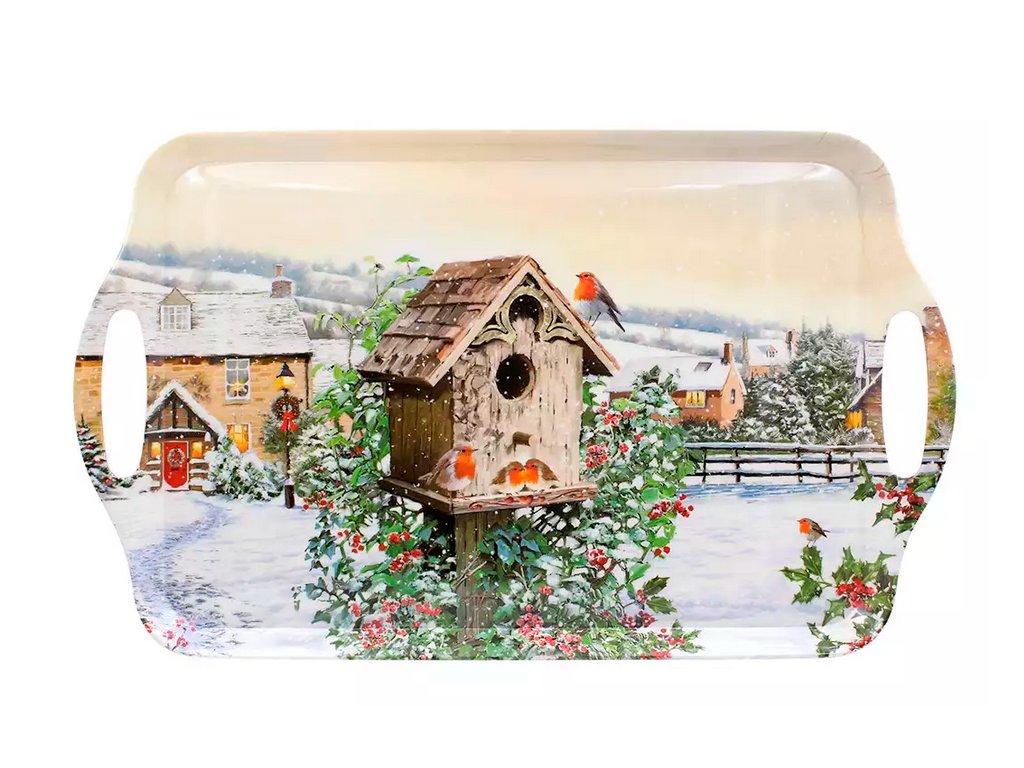 Leonardo - Plastový tác Ptáčci u budky v zimě - 49*30 cm