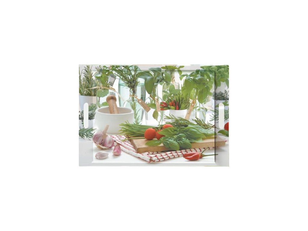 Plastový tác s oušky s dekorem Bylinky - 49*34cm