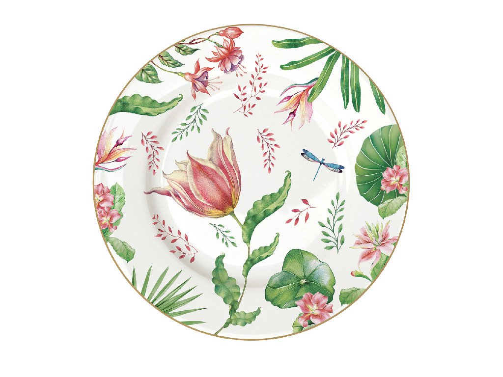 Dezertní talíř Botanic chic s botanickými motivy po obvodu skvěle vynikne na vaší sváteční tabuli. Lze dávat do myčky na nádobí.