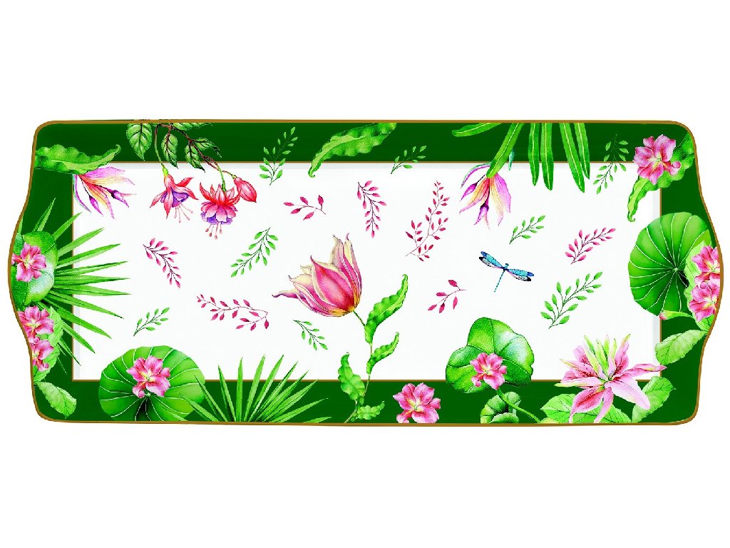 Porcelánový servírovací talíř Botanic Chic s botanickými motivy v dárkové krabičce. Rozměry tácu jsou 35×15 cm.