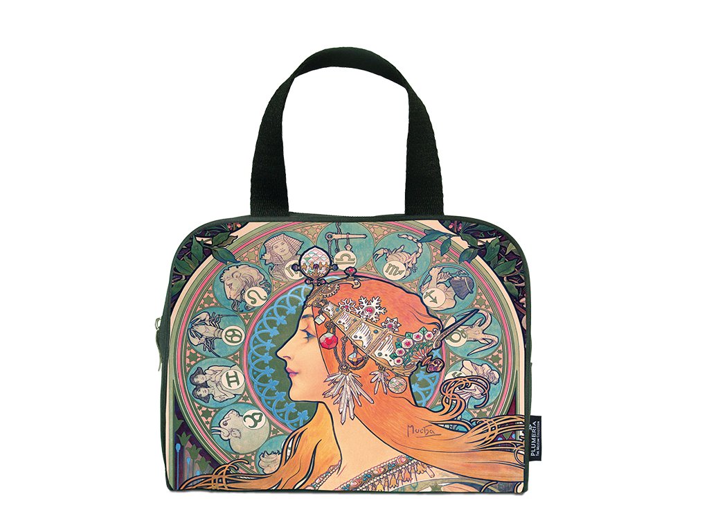 Cestovní taška se zipem Alphonse Mucha Jaro pochází z rakouské produkce Plumeria. Rozměr cestovní tašky je je 24 x 18 x 7 cm.