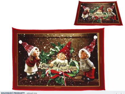 Kobereček Vánoční skřítci je součástí značky Carmani. Rozměr koberečku je 40 x 60 cm.