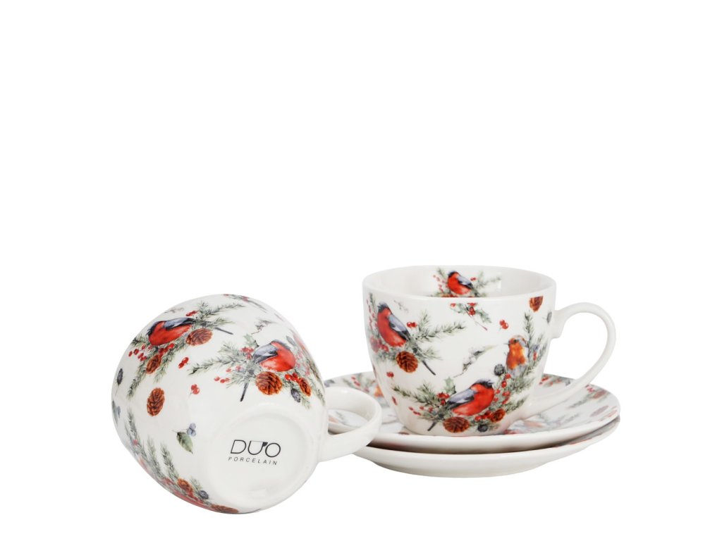 Šálek s podšálkem na kávu Vánoční ptáčci - sada 2 ks - 250 ml