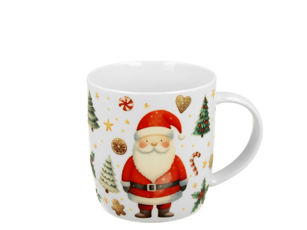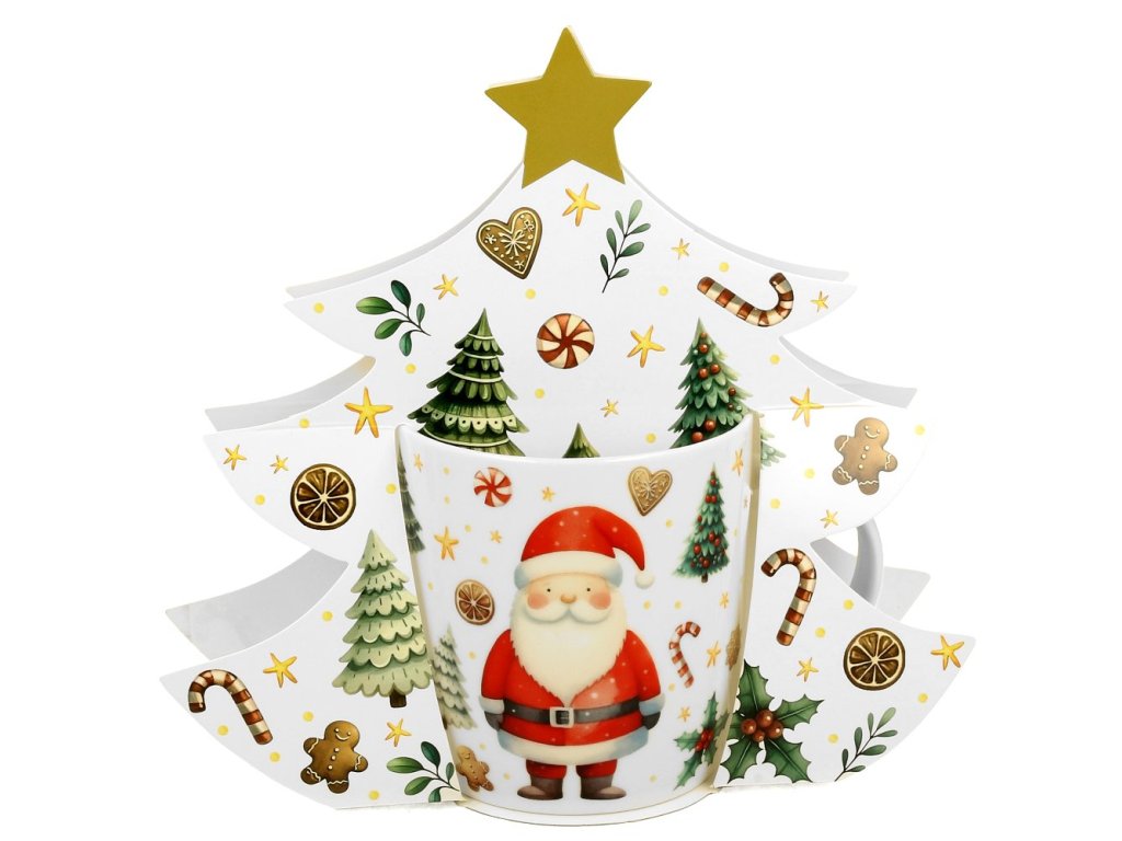 Porcelánový hrnek na čaj v pěkném dárkovém papírovém přebalu ve tvaru vánočního stromečku. Vhodné do myčky na nádobí i mikrovlnné trouby.
