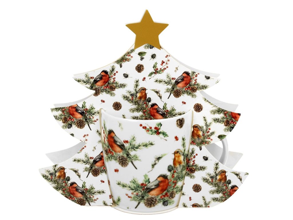 Hrnek 400 ml v papírovém stromečku - Vánoční ptáčci