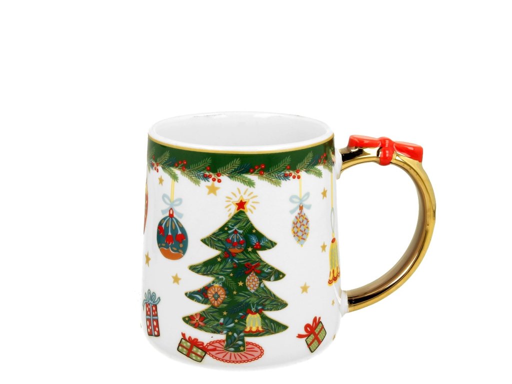Hrnek 450 ml zlaté ucho s červenou mašlí - Okolo vánočního stromečku