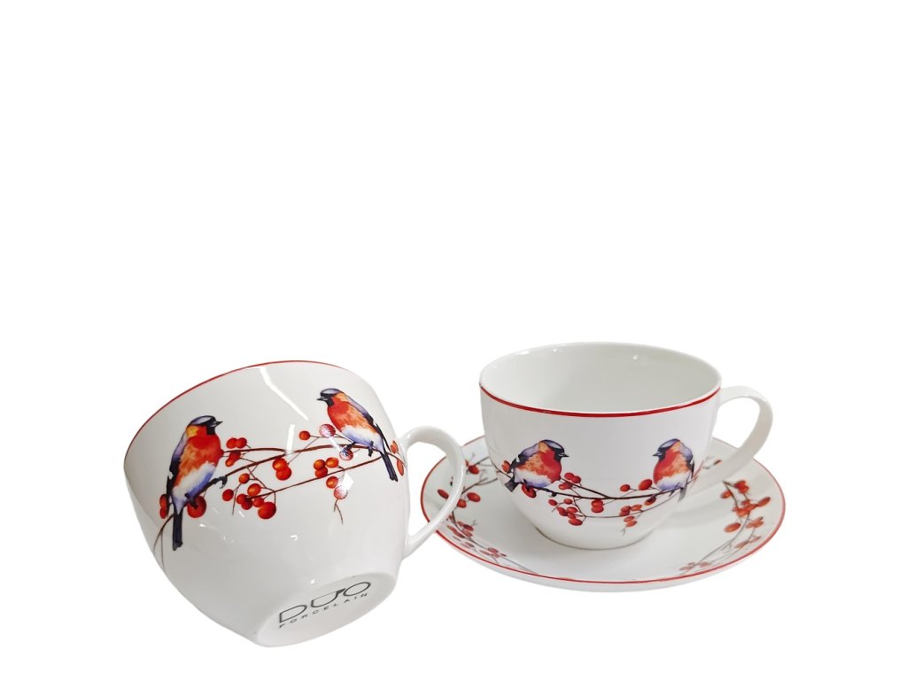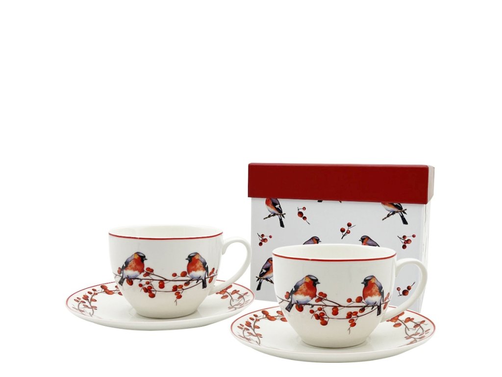 Šálek s podšálkem na kávu - Vánoční ptáčci sada 2 ks - 250 ml