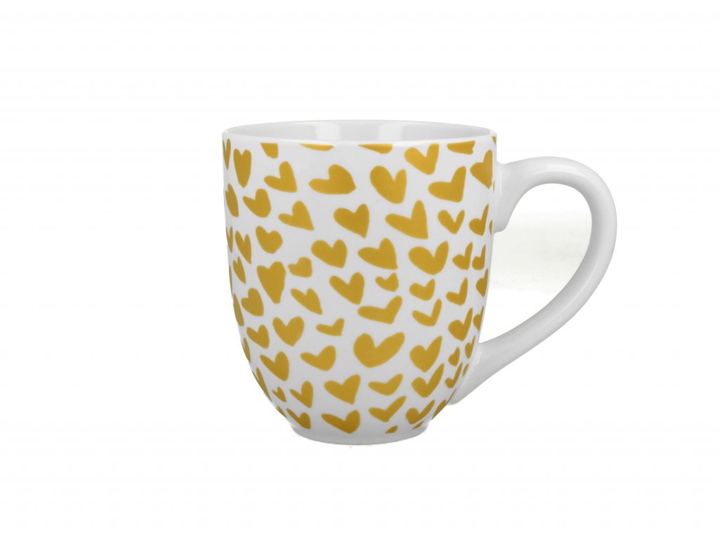 Hrnek GOLD HEARTS 1000 ml z řady HEART. Díky velké kapacitě se skvěle hodí i pro podávání polévek nebo snídaňových cereálií. Hrnek zdobený motivem rozsypaných zlatých srdíček. Jednoduchá, ale zároveň originální kompozice vytváří mimořádně harmonický celek. Hrnek je vyroben z kvalitního porcelánu, který se vyznačuje přírodní krémově bílou barvou s jemným leskem a mimořádnou pevností a odolností. Celý zabalený v ozdobné krabičce zdobené stejným motivem je skvělým nápadem na dárek k Valentýnu, ale i narozeninám a Vánocům.