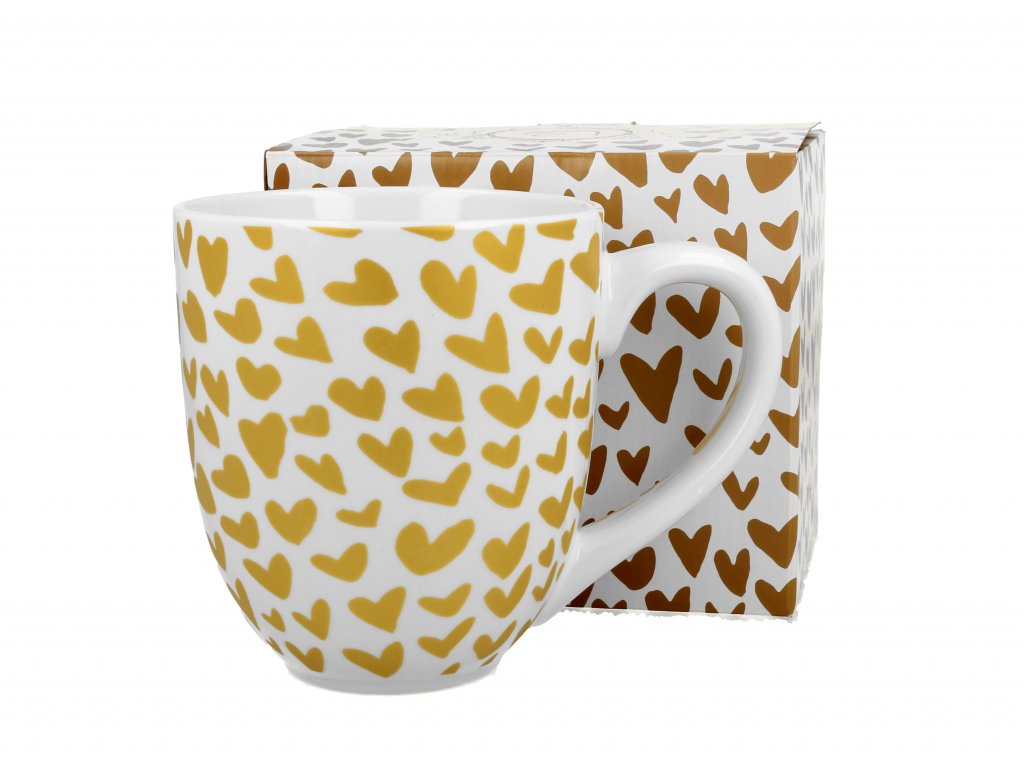 DG - Porcelánový hrnek jumbo XXL GOLD HEARTS, zlatá Srdíčka v dárkové krabičce - 1 litr