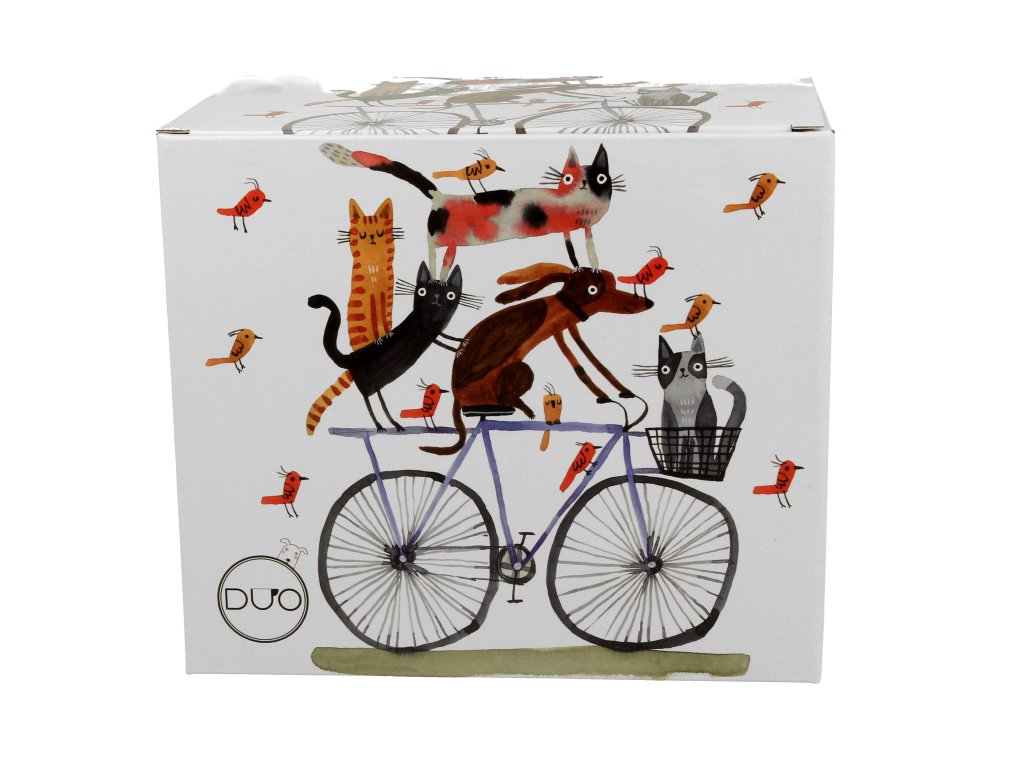 DG - Porcelánový hrnek XXL Pes, kočky a ptáčci na kole - 1 litr