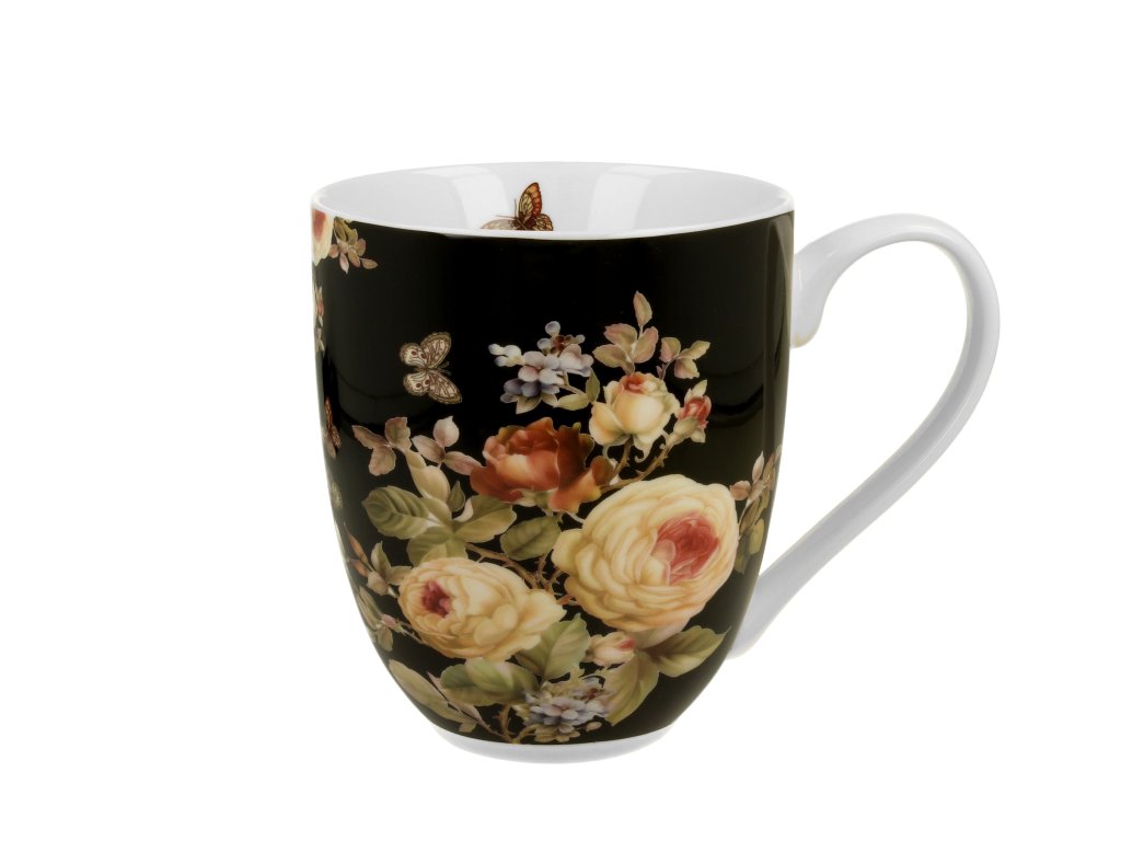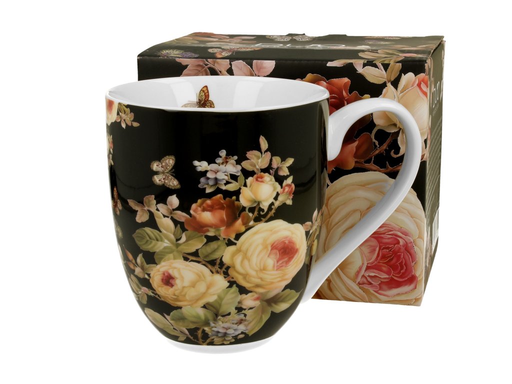 Porcelánový hrnek jumbo XXL ZAHRA, růže v dárkové krabičce v dárkové krabičce stejného dekoru. Objem hrnku je 1 litr.