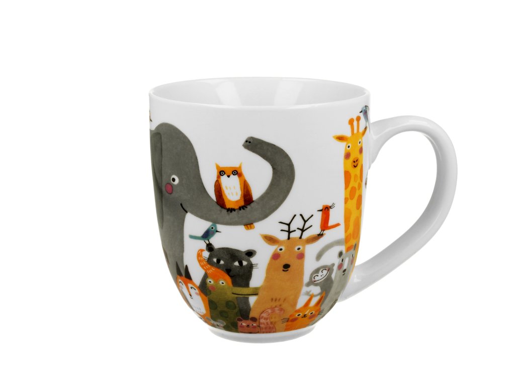 Velký porcelánový hrnek XXL Zvířátka Vás potěší nejen při popíjení oblíbeného nápoje, ale také svým jedinečným dekorem, který díky svému objemu náležitě vynikne.