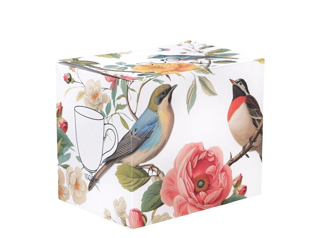 Porcelánový hrnek jumbo XXL GILE barevní ptáčci v dárkové krabičce stejného dekoru. Objem hrnku je 1 litr.