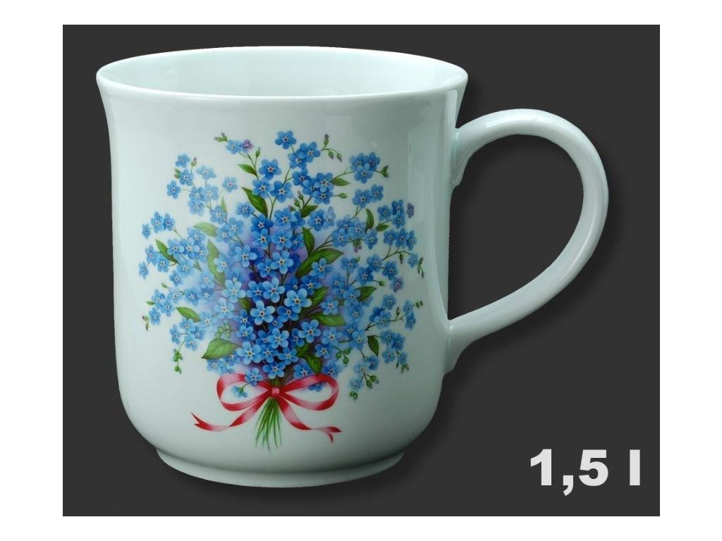 Velký porcelánový hrnek GOLEM "Pomněnky" - 1,5 l