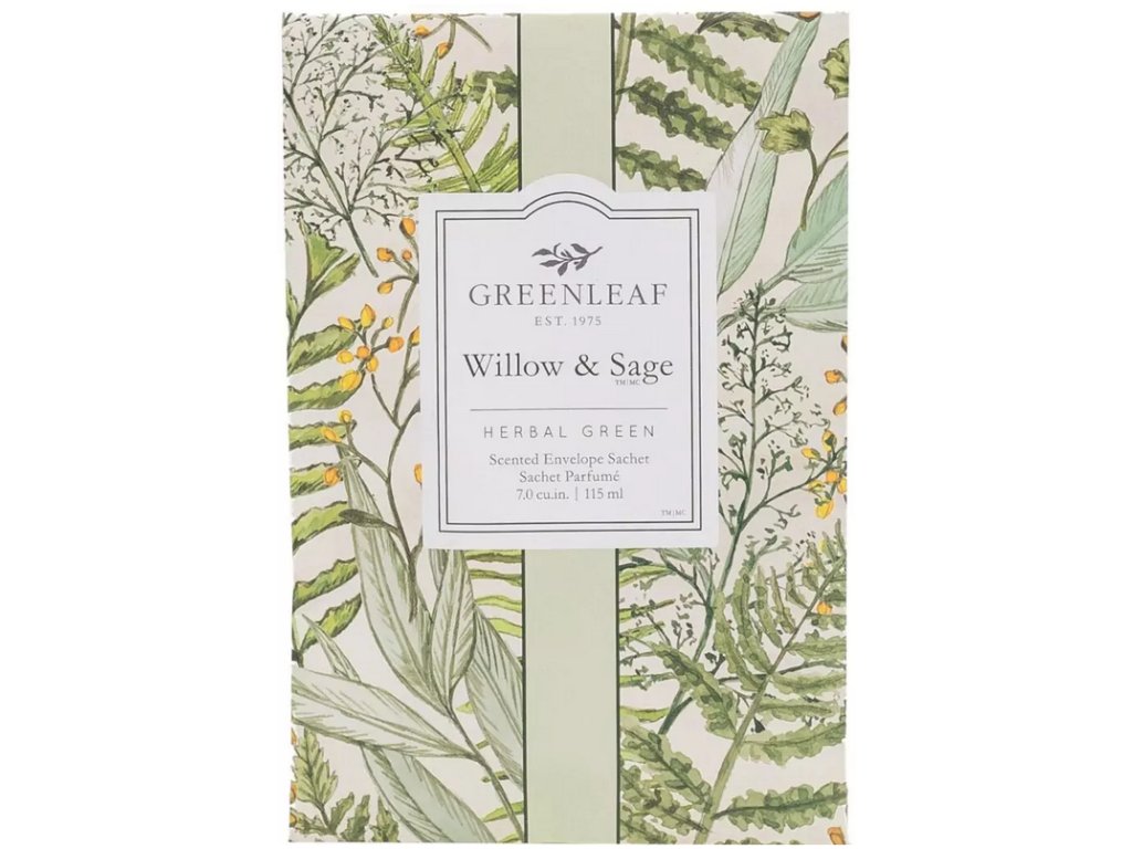Svěží bylinné tóny šalvěje a levandule zjemněné santalovým dřevem a doplněné cedrovým listem vytvářejí vůni teplého vánku procházejícího vrbou za slunečného dne. To vše nabízí vonný sáček Willow & Sage. Vonný sáček nabízí několik možností použití. Můžete jej umístit do šatní skříně a provonět své prádlo, vhodný též do auta či toaletu. Vysypete-li jeho obsah na podlahu a následně vysajete vysavačem, budete si tuto vůni připomínat při každém dalším úklidu. Vonný sáček lze též doplnit vonnými svíčkami či difuzéry se stejnou vůní značky Greenleaf. Popis vůně: hlava – bergamot, cedrové listy, meloun, srdce: šalvěj, muškátový oříšek, fialka, levandule, základ – santalové dřevo, kokos, dubový mech.