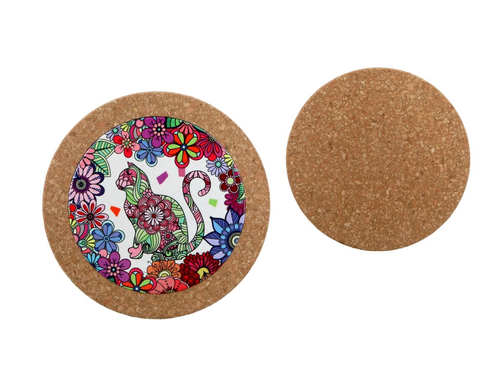 Kulatá podložka s keramickou deskou, dekor kočka - 19.5 cm