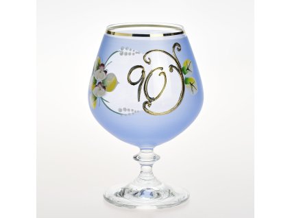 Ručně dekorovaná výroční novoborská číše 45 let, modrá o objemu 400 ml.