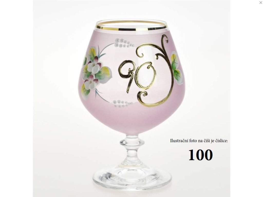 Ručně dekorovaná výroční novoborská číše 90 let, růžová o objemu 400 ml.